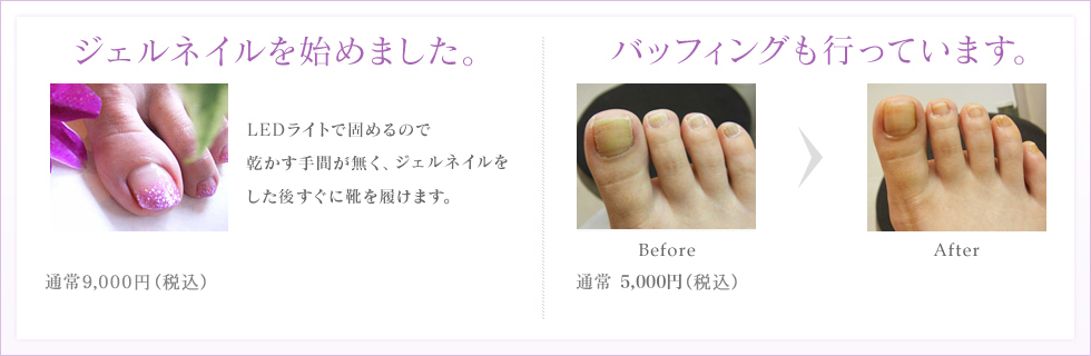 | ◆ ジェルネイルオフ+バッフィング | ¥7,000(税込) | |