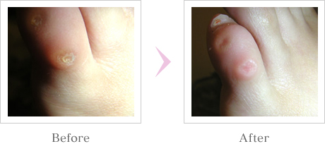1回のケアでほとんど角質(魚の目)はきれいに除去されますが、1ヵ月後にはまた同じように角質が付いています。